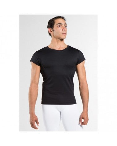 An ideal uniform staple, this crewneck cap sleeve men microfiber shirt is anything but basic.